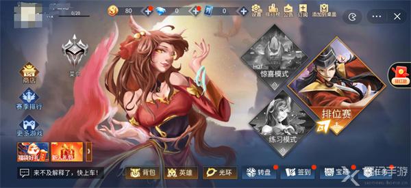 6、在熟悉的游戏界面中可以看到排位赛、惊喜模式、练习模式等不同的玩法入口;