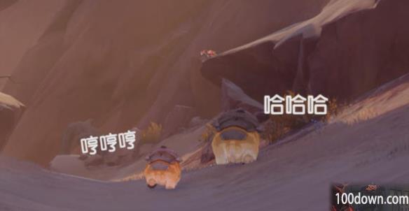 2、然后跑到悬崖这个位置跳下去或飞下去,在下面能看见“哼哈二将”;