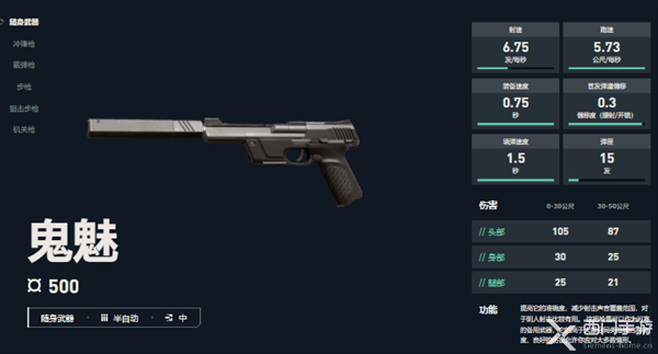 鬼魅是―把相对便宜的半自动手枪,它伤害高,弹夹容量小。通常打头两发、打身体5-6发可以杀敌。鬼魅通常是附带消音器,来帮助提高它的准确度、减少射击声音覆盖范围,对于阴人射击比较有用。这把枪是可以作为可靠的备用武器,它的高于大部分同类枪械的准确度、良好的伤害允许你应对大多数情形。 |