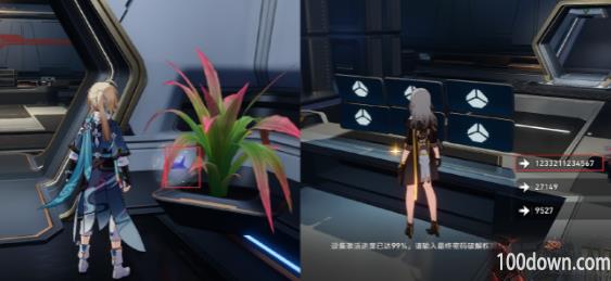 2)来到基座舱段如图所示的位置,与奇怪的植物对话,给它浇什么都行,最后都得选纯净水。浇水后会给黑塔币,说第二天再来,根据测试服,明天再来浇水还有奖励。