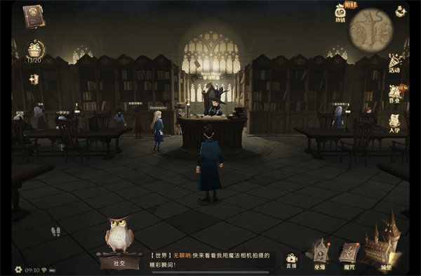 1、点击右上角的小地图,找到【图书馆】进入霍格沃茨图书馆;