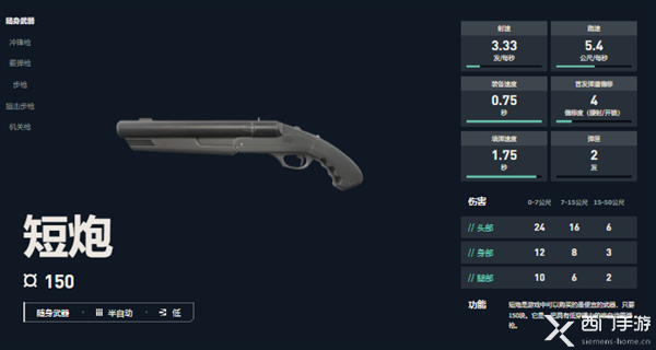 短炮是游戏中可以购买的最便直的或器。只要150决。它是一把具有低穿透能力的半自动霰弹枪。 |