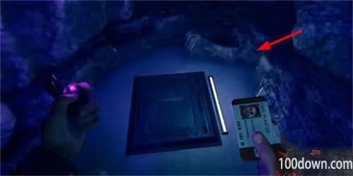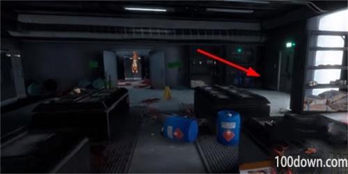 3、从楼梯下去,一直往里走,进入右边的房间内,在桌子上可以找到我们需要的第一张门禁卡;