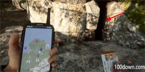 4、然后再来到下图的位置,按照图中箭头标记,进入山洞内去获取第二张门禁卡;