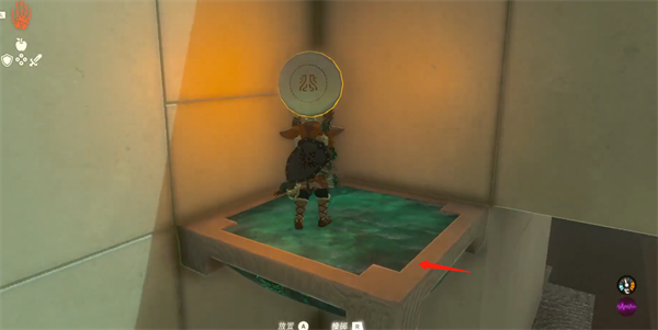 8、使用究极手将上方的石球移动到升降平台上。