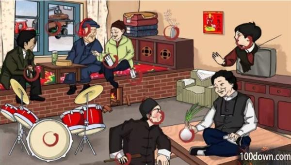 图中不和谐之处都是以前电视上的小品元素,难度不大。