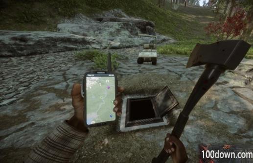 2、到达这个位置之后,玩家在下图位置挖掘,可以找到一个地下舱门: