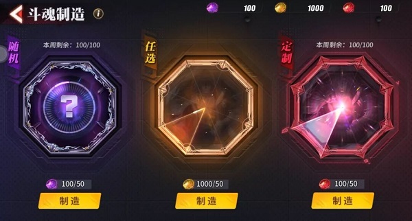 4、斗魂制造每个星期只有一百次的机会,也就是说我们想要给阵容都搭配上合适的阵容,就需要在每个星期都有足够的材料去制造。