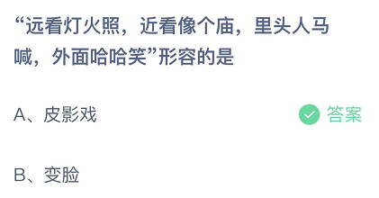 远看灯火照,近看像个庙,里头人马喊,外面哈哈笑形容的是-蚂蚁庄园10月12日答案
