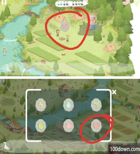 3、当小女孩在农民伯伯旁边时就可以得到爱心形石头,玩家把爱心形的石头放到河里的怪兽石像那里,就可以完成了。