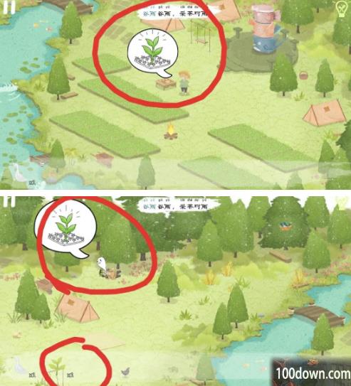 2、然后等待它下雨,点击农夫就可以得到树苗,再把树苗拉到小女孩哪里,小女孩就会自己走到农夫旁边;