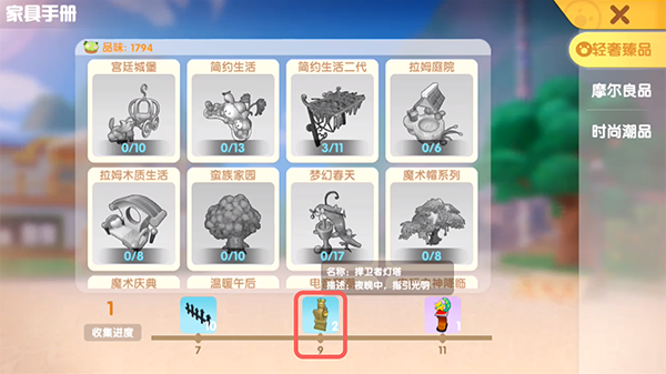 在游戏中收集到9套家具之后,就可以通过图鉴领取到该奖励,所收集的家具必须是轻奢臻品家具中任意9套家具,其他图鉴的家具收集不包含在内。