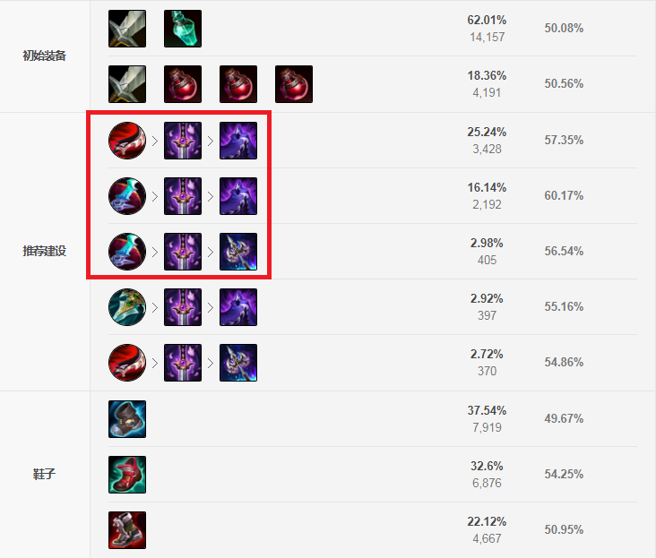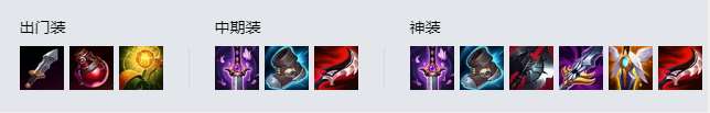 最经典的出装也是最适合的出装,因为劫也是一个需要攻速的英雄,作为一个中单刺客,劫需要全出攻击,利用华丽的技能和操作带走对手的生命,用最锋利的刀带走最菜的对手。