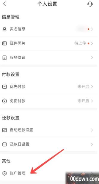 4、之后就可以进入个人设置中心,玩家往下拉,在最下面位置可以看到有【账户管理】;
