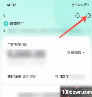 3、点击抖音月付设置图标之后,在抖音月付的页面里再点击右上角的【设置】图标;