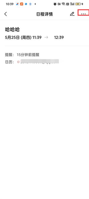 3.在日程的详情页面中点击右上角的【三点】图标;
