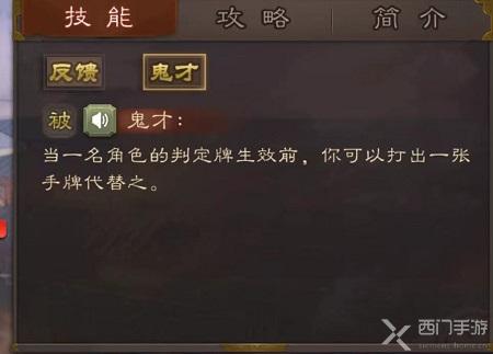 鬼才--当一名角色的判定牌生效前,你可以打出一张手牌代替之。