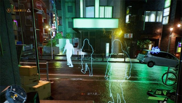 1、走出公寓后按住TAB打开视觉,这个时候就可以观察到是谁在干扰我们了,跟着残影前进;