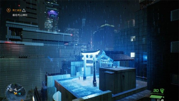 3、到达目的地后发现前面有迷雾,前往屋顶的神社进行清理,天上的天狗可以先瞄准再按空格上去;