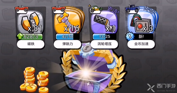 在登山赛车手游中玩家可以在横板的地图上利用刹车、油门和各种道具穿越障碍,吃金币和钻石,解锁更多厉害的赛车性能,有多个关卡等你闯荡。