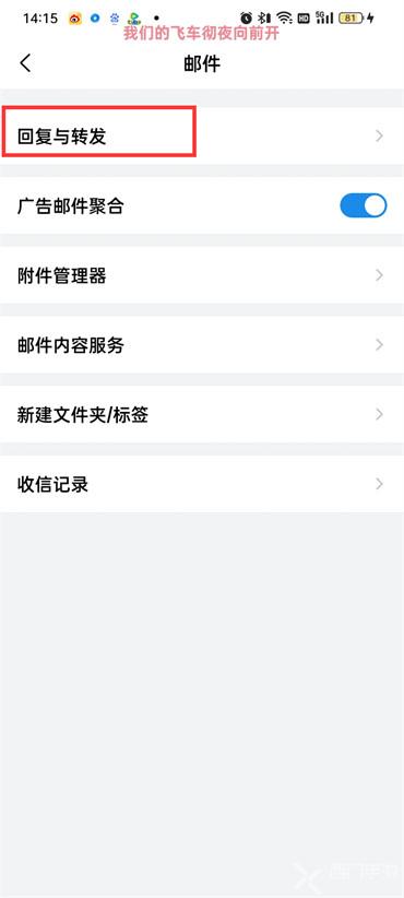 4.最后在邮件的页面中点击【回复和转发】后在下一页面设置即可;