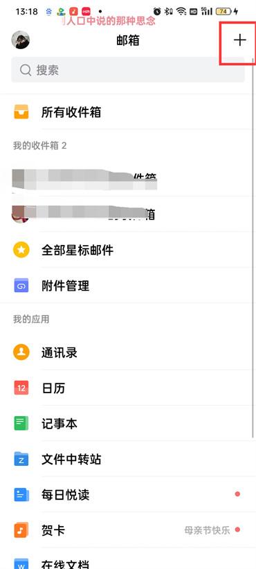1.首先打开QQ邮箱软件进入到首页之后点击右上角的【加号】图标;