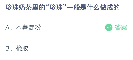 珍珠奶茶里的“珍珠”—般是什么做成的?这是今日的蚂蚁庄园小课堂的问题,很多玩家都比较关注这个话题,接下来就让小编为大家详细介绍一下,希望可以帮助到大家。