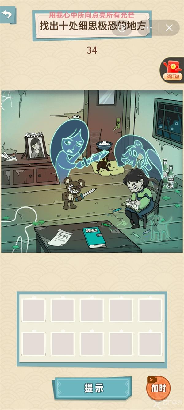 就挺秃然的是痘印中的一款非常烧脑的简笔画风闯关小游戏,小编为大家带来了在这其中的孩子的梦找出十处细思极恐的地方”这一关卡的通关攻略快来看看吧。