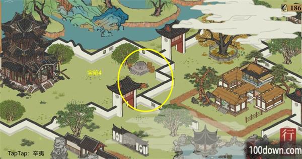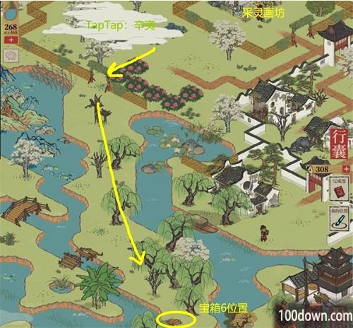 12、宝箱六:根据下图,从采灵画坊一直走到宝箱六的位置即可。