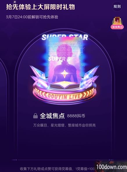 love灯牌(99抖币=9.9元)、璀璨舞台(899抖币=88.9元)