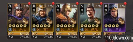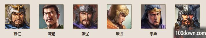 推荐阵容:张辽+曹仁+满宠+乐进+李典