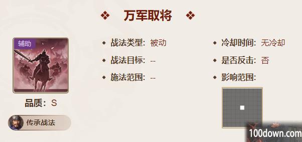 万军取将:自身获得【必中】:攻击不能被【援护】。伤害提升8%~16%,且对处于【孤立】状态敌军伤害提升至16%~32%。