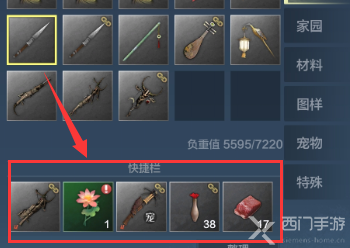 3.很多玩家不知道该如何装备,我们其实可以直接将武器拖放到快捷栏里面即可;