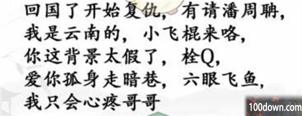 本关难度不大,图中的热梗都是最近网络上比较热门的梗,不熟悉的参考攻略即可。