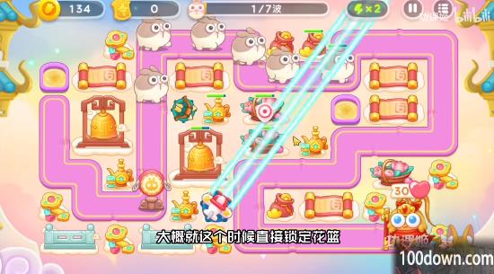 4、后期的话,道具基本清理完了之后,要顺着七仙女的方向放一个炮塔,玩家可以参考下图: