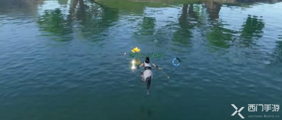 3、玩家㤇使用望气查看周围,然后使用轻功,来到湖中央的船只上;