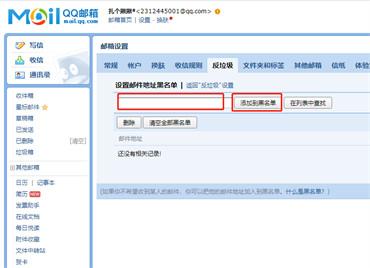 3.来到反垃圾的页面中点击【设置邮件地址黑名单】;