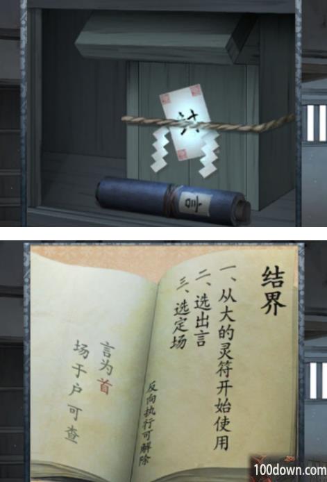 3、在柜子中用刀划开,拿到符咒和场地,之后根据书里内容反向操作;