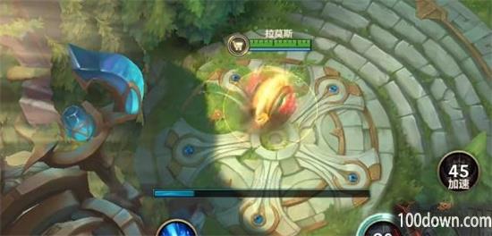 推荐大家使用龙龟来完成这个挑战使用,使用其1技能在河道击败螃蟹有加移速的加速阵,即将经过加速阵使用治疗或者附度正义荣耀;