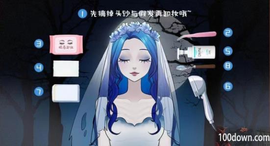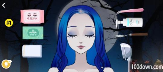 2、之后就要开始给她卸妆,这里有很多的道具,玩家要按顺序使用;