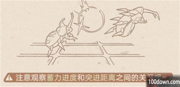 2、松开前进按钮,消耗体力向前突进,若完成突进时,鬼兜虫恰好抵达对手的位置,击中了对方即可释放一次【刺挑】;