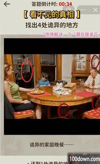 在看不见的真相游戏中有很多的关卡, 其中“藏在餐桌下“合影是在一个家庭聚餐中,这个合影中也是有种诡异的四个地方,但是有玩家还不知道具体是那三处,接下来小编为大家带来了详细介绍。