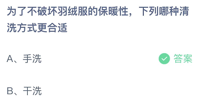 为了不破坏羽绒服的保暖性,下列哪种清洗方式更合适-蚂蚁庄园12月29日答案