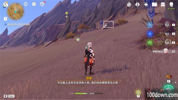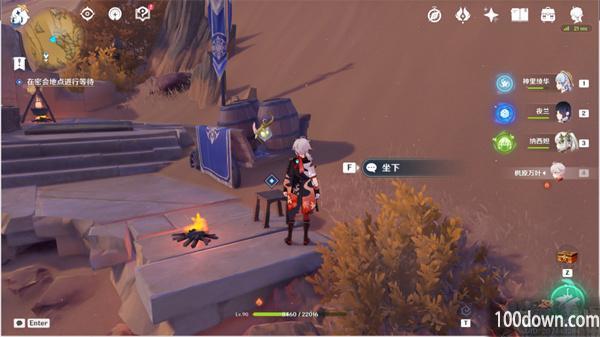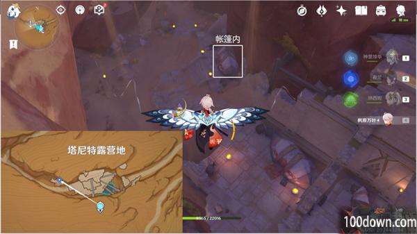 1、首先传送到千壑沙地神像,往地图的西北方向下飞,前往帐篷内;