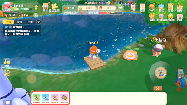 2.在家园中找到自己的鱼塘,靠近后使用鱼饵钓鱼;