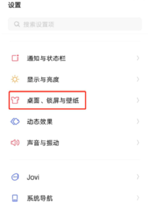 2.这个时候用户可以点击手机上的设置选项,在设置中找到【桌面、锁屏与壁纸】选项;