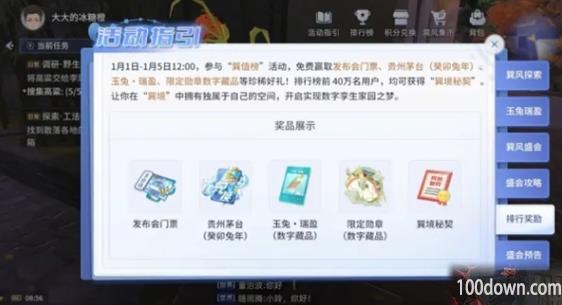 茅台巽风数字虚拟世界游戏中,玩家可以通过做任务、探索来获取相关游戏道具,其中巽值、共建值都是有排名的,排名靠前可以获取数字藏品,那么有哪些数字藏品呢,接下来小编为大家带来了详细介绍。