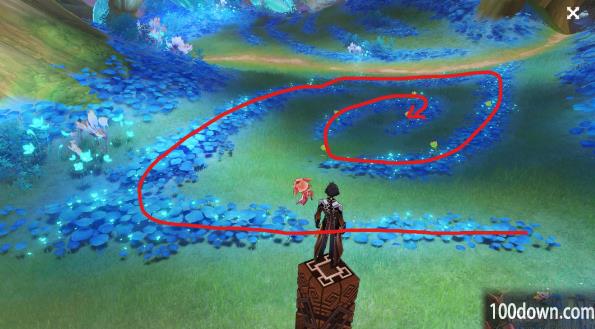 【一号】:净化完地面的净觉花之后,飞到空中如图所示绕一圈拿花瓣,拿齐花瓣就出现剩余的净觉花