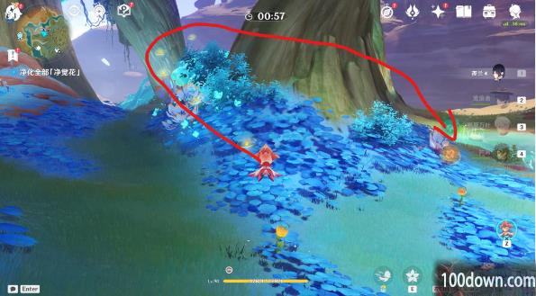 1、玩家需要使用斯露莎按顺序(一笔画)触碰净觉花,即可完成对净觉花的净化;