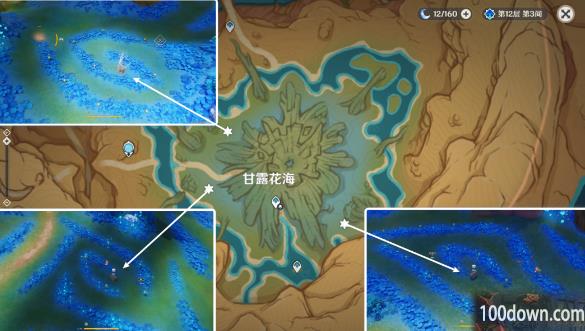 2、净觉花的位置共三处,完成一处奖励一个精致的宝箱,位置如下: